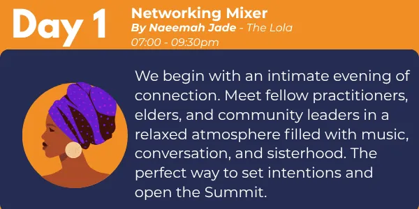 We begin with an intimate evening of connection. Meet fellow practitioners, elders, and community leaders in a relaxed atmosphere filled with music, conversation, and sisterhood. The perfect way to set intentions and open the Summit.